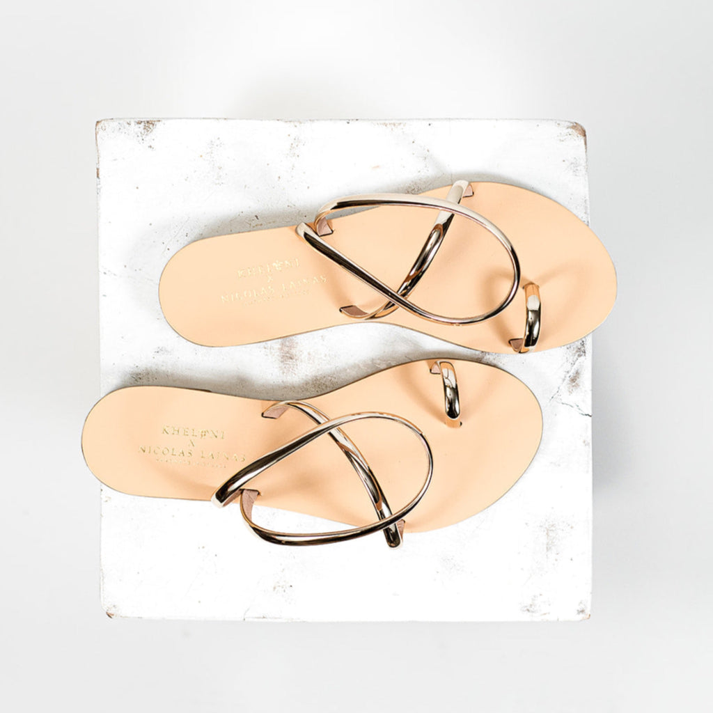 Designed by Nicolas Lainas in collaboration with Kheloni, the Elena sandals are made with an arch-style strap to provide support and a simple elegance With an ergonomic design the Elena sandals can be worn day or night.