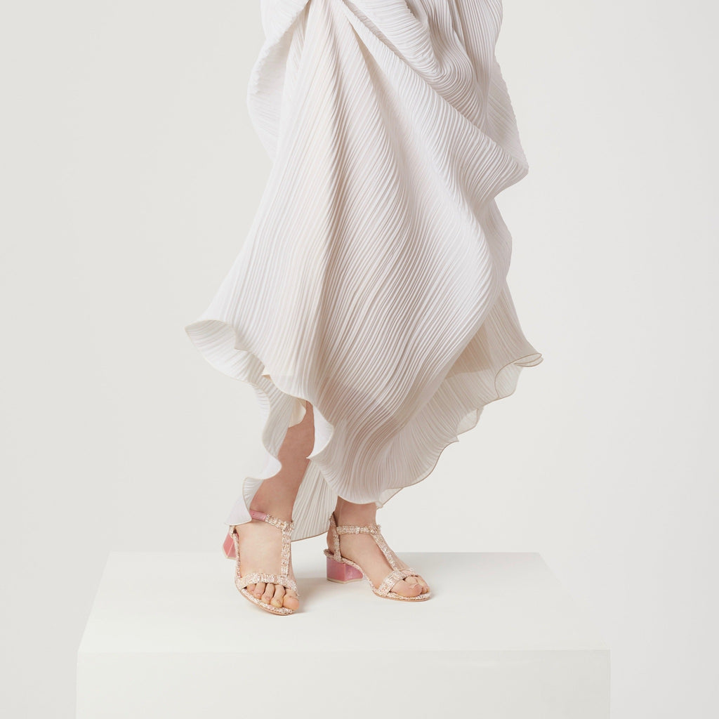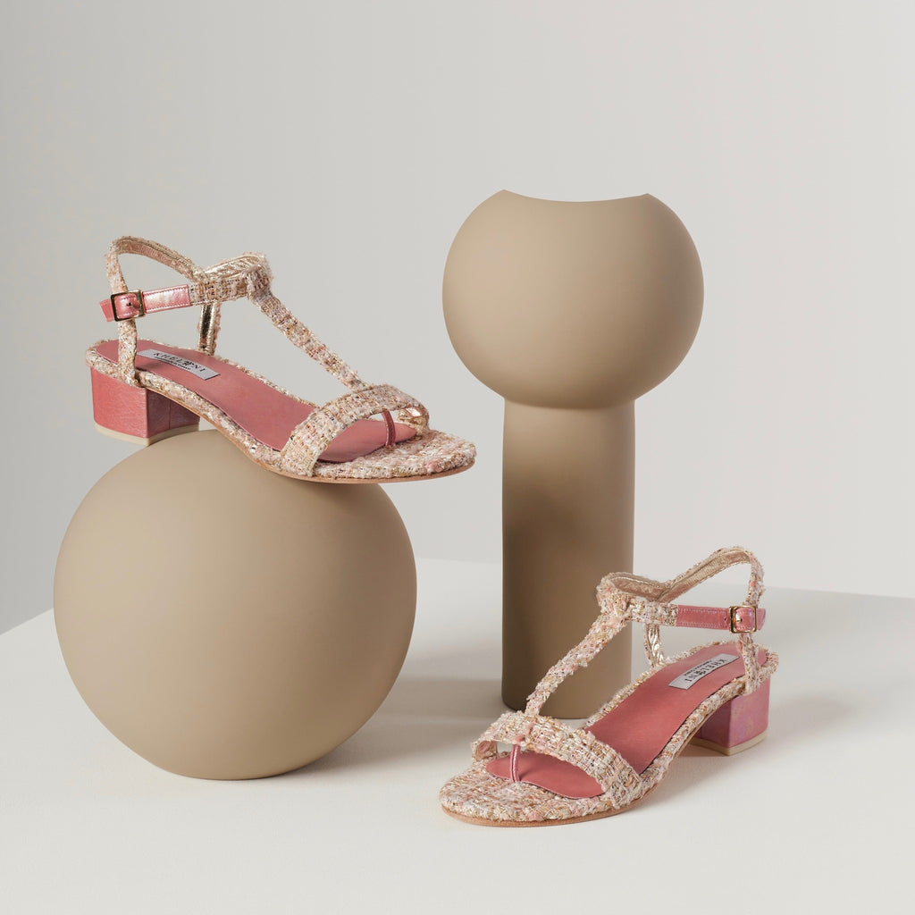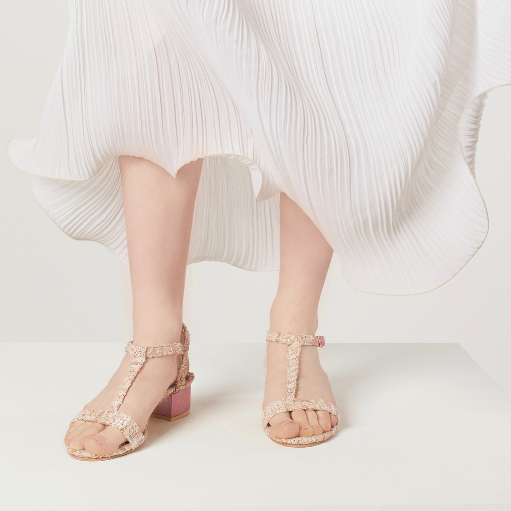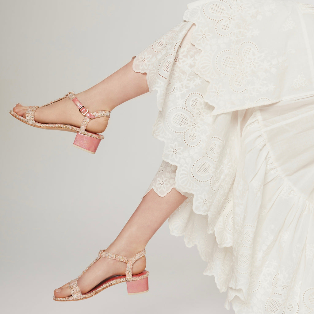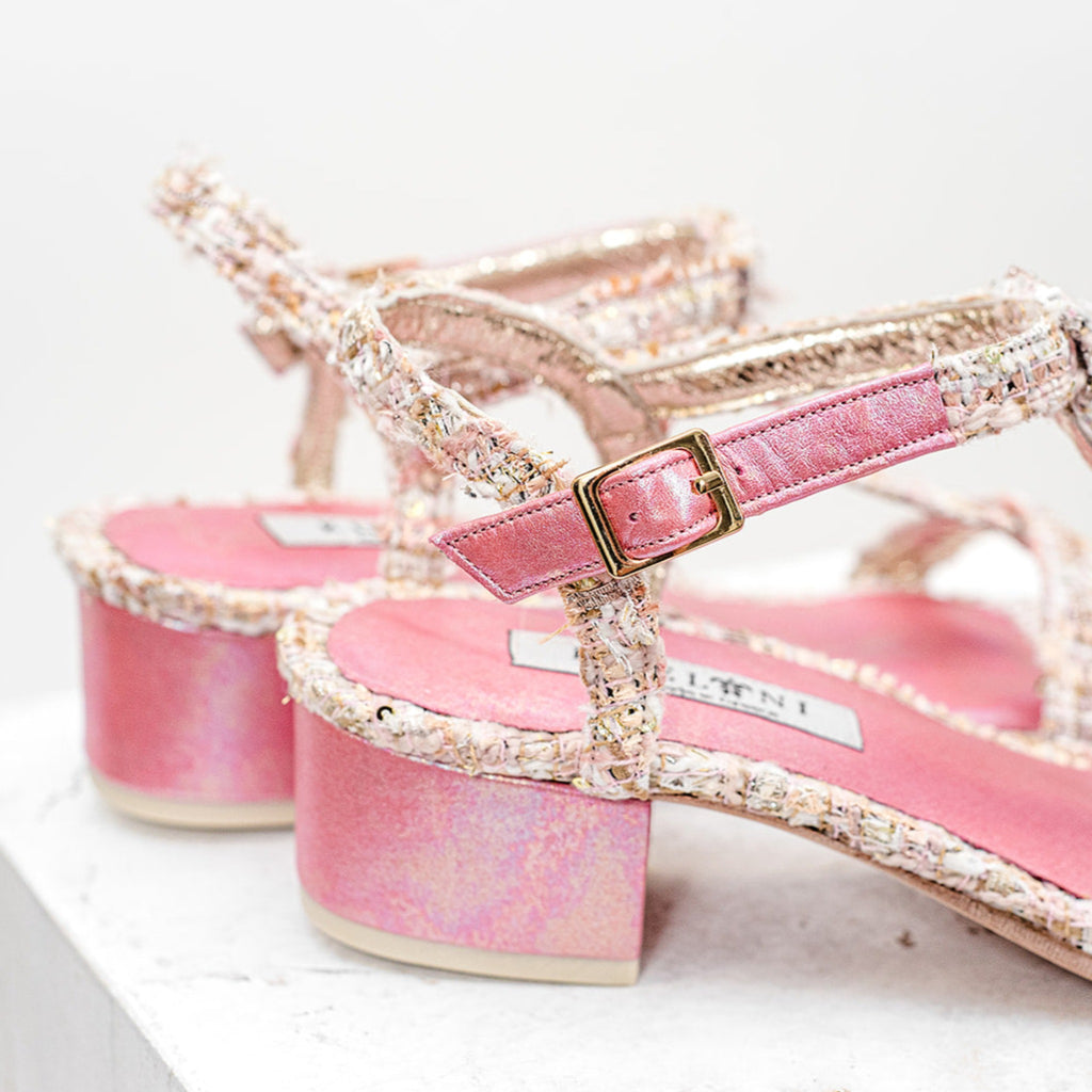 Beautiful designer pink leather and Italian boucle make these sandals perfect for any occasion. Add some glamour to your favorite sundress or white jeans, or wear them to a summer wedding. We guarantee these elegant sandals will get noticed. Even brides and bridal parties love them. With a 1.5" heel height and cushioned insole you can dance the night away. Who said you have to sacrifice comfort for style?