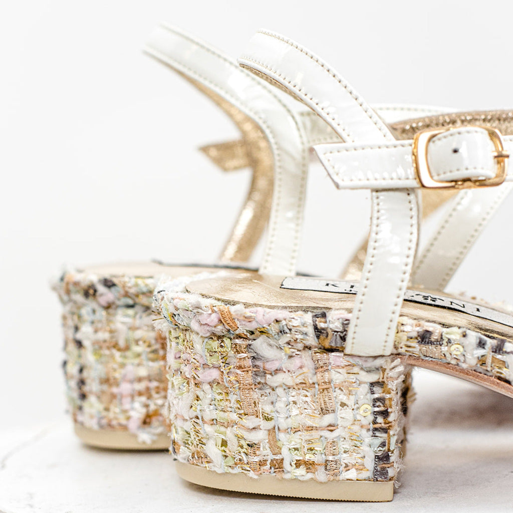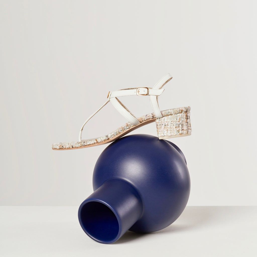 We love to mix up textures so we chose beautifully woven boucle for the heel and combined it with glossy white leather straps with an added touch of gold. Each pair is adorned with our little gold plated sea turtle charm and lined with soft gold leather. With the perfect heel height and padded footbed, the Efi’s are ideal for formal occasions, bridal sandals or with your favorite summer dress.They truly are as comfortable as they are beautiful.